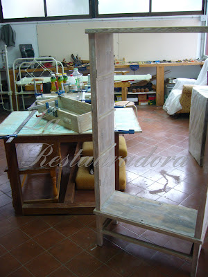 Se trata de un pequeño armario de años 40 que estaba pintado de blanco y forrado con plástico adhesivo. Un horror, pero con muchas posibilidades!!!