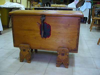 Se utilizaban fundamentalmente para viajar en los barcos (en el 2004 restauramos en el taller una pequeña caja de cedro totalmente cubierta de brea para protegerla del agua), y más tarde como mueble contenedor y decorativo en los hogares.