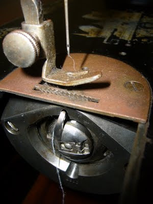 La máquina de coser Singer que restauramos en el taller en el año 2009, y cuyas fotos de la restauración y sus diferentes pasos publicamos hace un par de semanas (mirar publicaciones anteriores) utiliza este sistema. También fue cedida por su propietaria para la exposición.