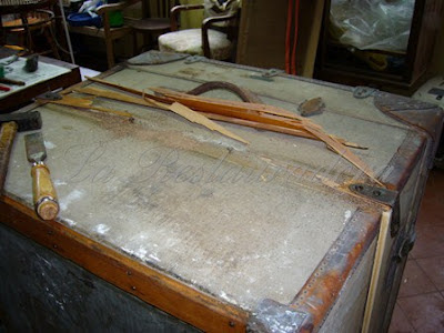 Hola a todos: Se acuerdan de la entrada sobre las termitas… http://larestauradoradelalaguna.blogspot.com.es/2012/03/termitas-cryptotermes-brevis.html. En ella les comentaba que en 2010 restauramos en el taller un baúl de viaje donde nos habíamos encontrado algunas sorpresas, como unos «inquilinos indeseados».