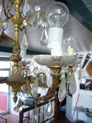 Así es como la encontramos… con mucha suciedad y lágrimas desparejadas, mezcladas o simplemente inexistentes. Pero conservaba las cazoletas en perfecto estado, tenía muchas posibilidades y…simplemete nos gustó!!!