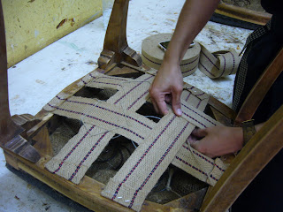 Grapamos cinchas nuevas y cosimos los resortes. Después creo que las tratamos contra la carcoma…no me acuerdo!!! Son tantos los muebles que pasan por las clases que me despisto bastante…