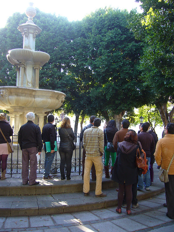 ¡¡¡Parecíamos unos locos mirando para arriba!!! Aquí está el grupo frente a la fuente…
